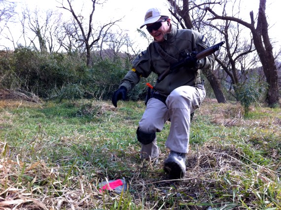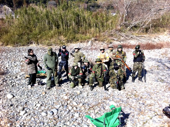 エアコキオンリーデイ Category:サバイバルゲーム Date:2014年01月19日 エアコキ好き者による、コッキングだけのサバゲーイベントに参加してきました。 とりあえず、みんなが持ってきたエアコキを見せてもらいました。 ん?そこのピクセルデザートの君・・・それでは戦えないよ・・・? やっぱり参加条件付けちゃうと集まる人数少なくなっちゃいますが、それはこういう趣向限定系イベントをするのにはつきものです。 それでも13人集まりました。大したモンだ このイベントの舞台は、毎度おなじみ東京ドーム4つ分の広さを誇る中洲フィールド!! 味方と離れ過ぎると無線通信できなくなるのでご注意!! まー・・・ この中洲は障害物が離れ気味で精度が良ければ電動にもスナ銃で十分対抗できるフィールドなので、わざわざエアコキ限定にする必要もそんなにないんですが。。。 たまにはこんなんもいいでしょう 今回のイベント、実は今年から始まったリーグ戦の初戦もやりました。 記念すべき初戦はもちろん シャッガンvsスナ銃 (↑参加人数少ないのでこの組み合わせ以外できない) リーグ戦のゲームは4on4で、年間通してちょっとずつやっていきます。 ゲーム前のスナチームのブリーフィング。 左から二番目のカルビナ子の御姿がお美しく、高貴で妖艶な雰囲気をお放ちあそばされていました。 こちらはシャッガンチームのゲーム前ブリーフィング。 若干手練が揃い過ぎている感が・・・ シャッガンの圧勝か? いや、でも基本このフィールドはスナ向きなので良い勝負かな? 俺がスナチームなら機動力と連射性に勝るシャッガンチームに先にセンターフラッグ周辺をわざと占領させておいて、遠くからスコープで一人ずつ減らしていく戦術をとるなっ だってほれ↑ シャッガンチームは誰もスコープないやん この戦、楽勝過ぎワロタ などと一人シュミレーションをしてみる。。。 いやぁ~ それにしても一番左のイサカライ夫からは気高く雄々しい武神のごとく、やんごとない雰囲気をお放ちあそばされていますね。分かるでしょ? ほら値上げもするわな・・・orz そして今季リーグ戦1ゲーム目がスタート!! あれ?スナチームの策士ささきが策を弄すると思いきや、割と普通に正面同士でやり合ってる・・・ おかしい・・・ さては大してやる気ないな!! ささき 策を弄さなかったささきは最右翼から回り込むが、味方が全滅して身動きがとりにくそう・・・ で、シャッガンチームはフラッグ(石)を自軍カラーに変更した後、ささきを包囲して終わりました。 エアコキオンリーイベントは初めての試みでもなかった(2回目?)んですが、やっぱばら撒かないサバゲは好きですね。とあらためて思いました。 あと、とにかくこのリーグ戦が盛り上がってくれたらなーと思います。 PR
