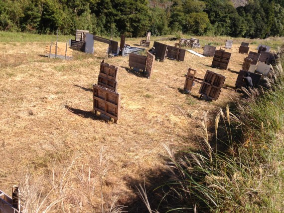 棚田でサバゲー Category:サバイバルゲーム Date:2015年10月18日 そういえばブログに書いてなかったなー なんですが、徳島サバコミュのメインフィールドだったABCフィールドが 閉鎖になってしまいましたorz 家から近かったし、整備・ゲーム両面で面白いフィールドだっただけに非常に残念です。 ところが!! 何とメンバーの方がまた新しいゲーム場所を用意してくれました。 そう。タイトルにもある通り「棚田」 実は棚田とは別にもう1コ確保した私有地フィールドがあるんですが、その話はまた今度。 で、この棚田を初夏あたりから草刈ったりして、最近ようやく何とかゲームらしいものが出来るようになってきたので、今回のゲームに参加してみました。 フィールドの様子はこんな感じです 3面の段違い平面フィールド。 1面の広さが10m×60mなので、フィールドの広さは横30m、縦60mしかありませんw かなり狭っ苦しいフィールドで、バリケードなんかを置いて近接戦闘を楽しむ感じですね。 まだまだ障害物がショボいですが、今後はもっと工夫して何とか面白いフィールドにしたいですね。 フィールドからちょっと上がったところにかなりの広さの駐車場と兼用のセーフティが。 第二駐車場含め頑張ったら50台くらい停めれそうですが、残念ながらフィールドのキャパが20人が限界なので、無駄に広く感じますw 草刈るのが大変なんだわコレ イベント開始前のセーフティ。朝はゆる~く、また~り それがサバコミュ流。 いや、午後もゆるいなそう言えば。。。 今回のゲームは合計18人のゲームイベントとなりました。うん、謀ったかのようにベストな人数です。 それにしても最近女性ゲーマーがよく参加してくれるようになりました。いいですよね、女子がいると。何というか・・・ コミュニティとしての公式感がアップしたような気になります。 あとは外国人と未成年とおっさんとおばちゃんにもサバゲーが広まって、ゲームしに来てくれたら更にいいですよね。道のりは遠いけどね さて、肝心のゲームですが、この様に姿勢を低くしてバリケにへばりつくのが、棚田フィールドでは基本の戦闘スタイルとなります。 いいですね~ こういうの好きです。僕はスポーツライク派のサバゲーマーなので雪合戦世界大会、あるいはペイントボールみたいで好みです。 しかし、段差があるため石垣沿いに進めば難なく敵の側面を狙うことができます。 ターゲーットを見つけたご様子。 中段には「若干マシな障害物」が2つほど 別角度からはこう! 万人受けはしないけど、障害物を使ったスポーツライクなゲーマーには楽しめるフィールドではないでしょうか。ただ・・・ やっぱまだまだ障害物が少ないね。 お昼休みに集合写真を撮ったんですが、いつも一緒の撮り方で面白くないので、ちょっと変な集合写真を撮ってみようと思って バリケードに隠れてもらったんですが・・・ ん~ やっぱおもんなかったですねw 今後のフィールドデザインとして個人的に思ってるのは、パレットを組んでロープで固定するという現代アートの様なバリケード迷路を設置しようと考えてます。あくまでも個人的にです。 みんながどう思うかは知らない。 コレね 今はまだ少ししか作れてませんが、アレを拡張してもっと複雑なデザインにしたい。 そう思うのでした。 でもねぇ せっかく棚田やし、サバゲーよりこういうことがしたい↓ そう思うのでした。 PR